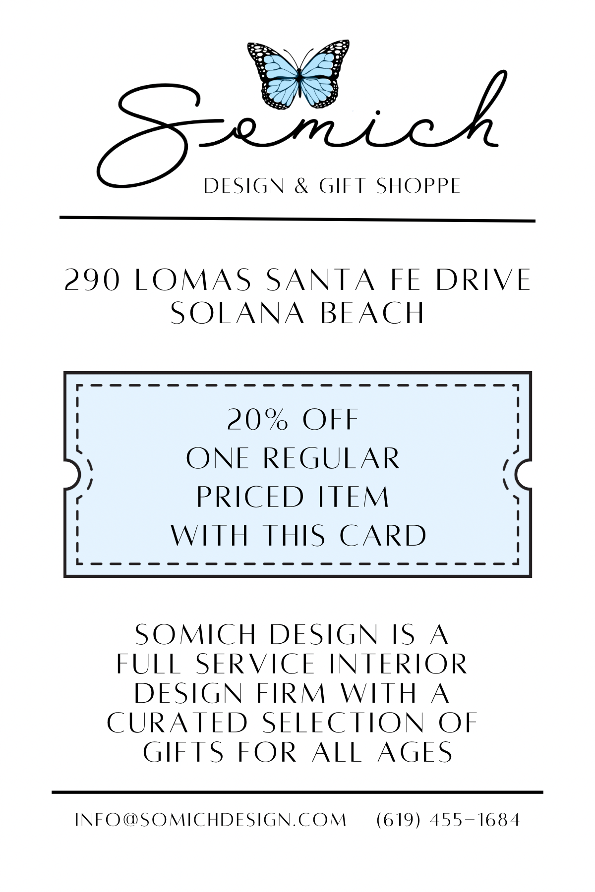 Show us this coupon at the shoppe to receive 20% off one regular priced item!